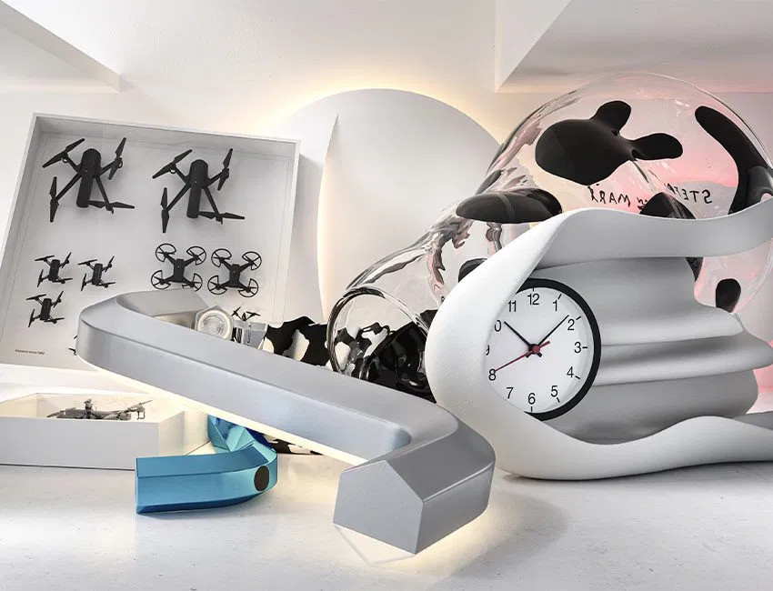 Aquí Humans Since 1982 Transforms Drones And Cctv Cameras Into Sculptural Artworks Designboom Deco Paint Drone Ikea Art